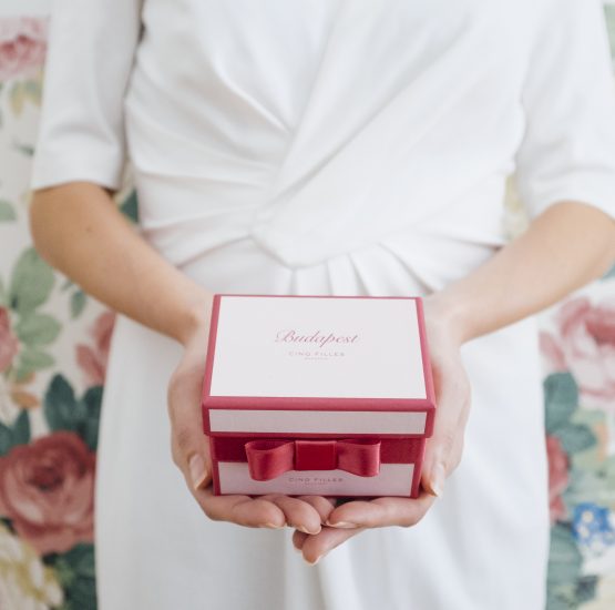 | A dobozt pink szaténszalaggal szállítjuk. |
